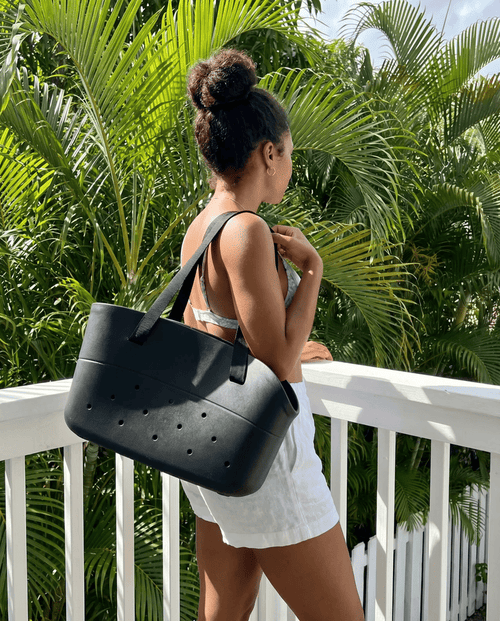 Made from high-quality rubber, this tote is built to handle everyday wear without effort. It doesn’t absorb dirt or moisture, so you can rinse it off and keep it looking clean no matter where you take it.
