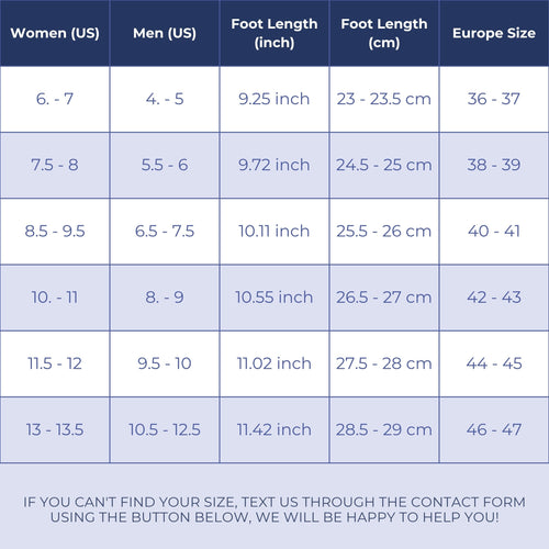 | Foot Length | Women (US) | Men (US) | Europe Size |